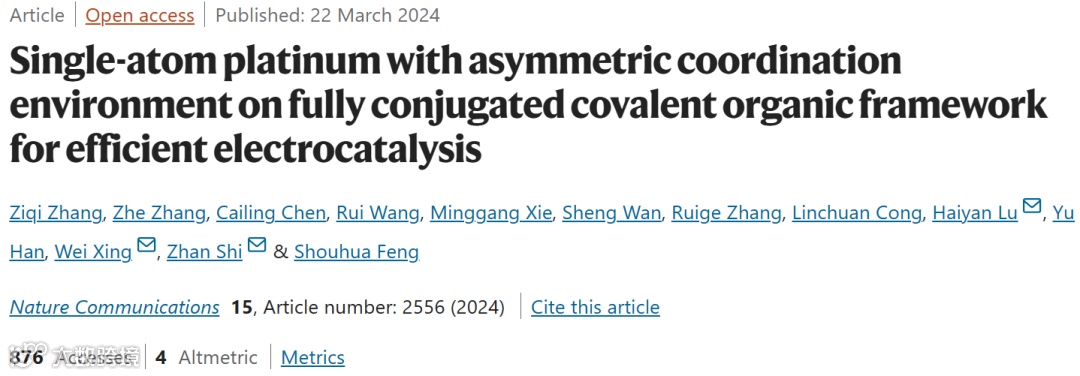 Single-atom platinum with asymmetric coordination environment on fully conjugated covalent organic framework for efficient electrocatalysis