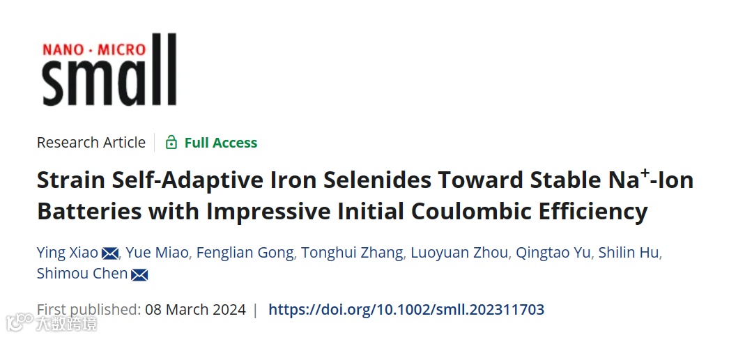近日,北京化工大学的肖莹副教授和陈仕谋教授在国际知名期刊Small上发表题为“Strain Self-Adaptive Iron Selenides Toward Stable Na+-Ion Batteries with Impressive Initial Coulombic Efficiency”的文章,通过构建同源异质结构对FeSe进行应力调节,制备具有高振实密度的无碳储钠负极,并通过实验表征、密度泛函理论计算、分子动力学模拟等揭示了高质量同源异质界面的形成和应力的分布,证实了自适应同源异质界面能够有效缓解充放电过程中材料应变,提升自身结构稳定性,确保电池的良好可逆性和快速钠离子传输动力学。