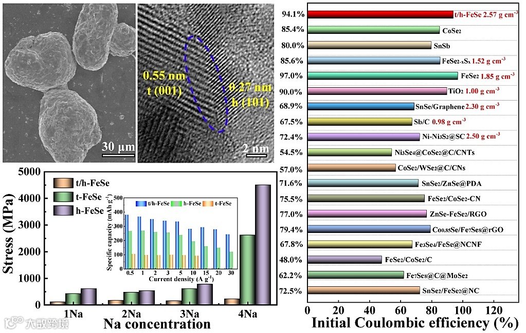应力自适应硒化铁应用于稳定、高首效钠离子电池