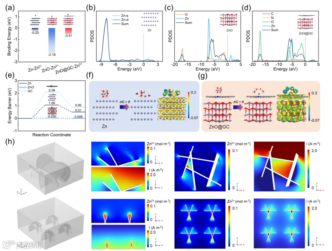 图5. Zn@ZnO@GC负极相关模拟计算结果