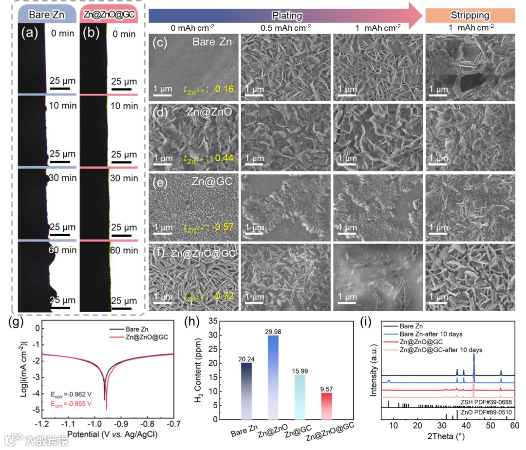 图3. Zn@ZnO@GC表面Zn2+沉积剥离行为研究