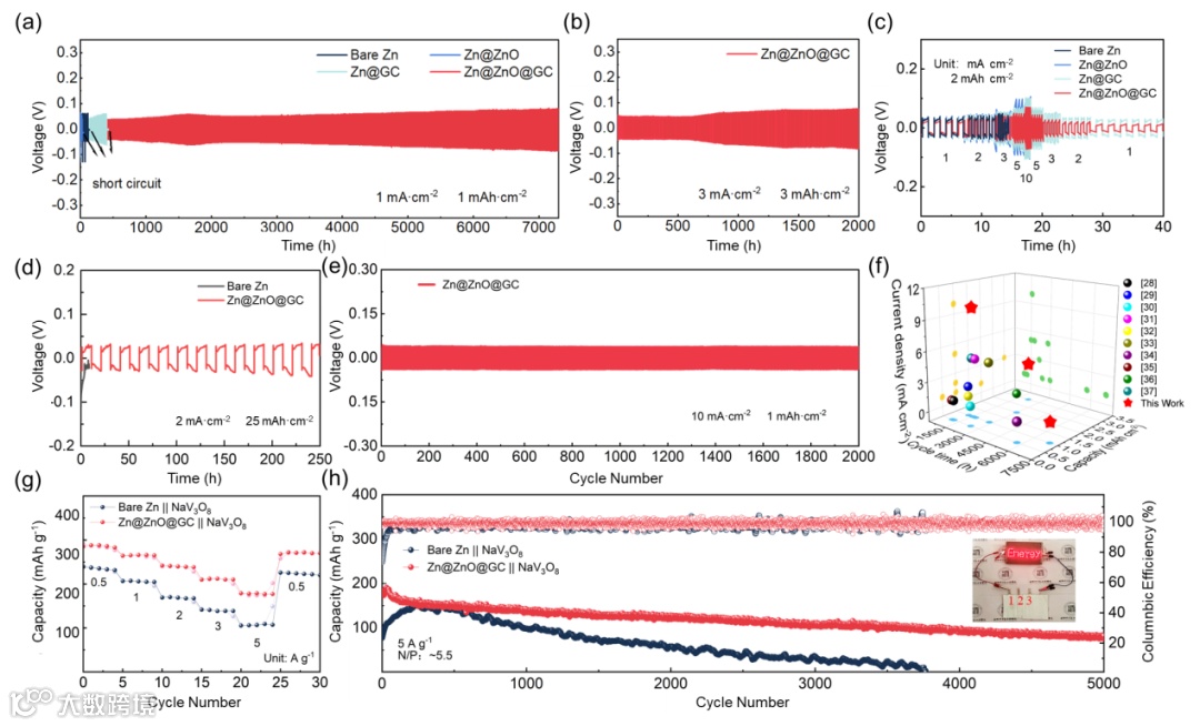 图4. Zn@ZnO@GC负极对称电池、全电池性能
