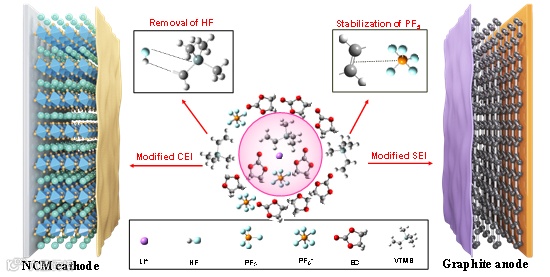 图1. 多功能添加剂VTMS对正负极的作用机理。