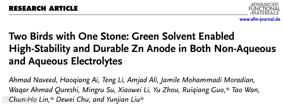一石二鸟,绿色有机溶剂构筑高稳定、高耐用水系及非水系锌离子电池体系