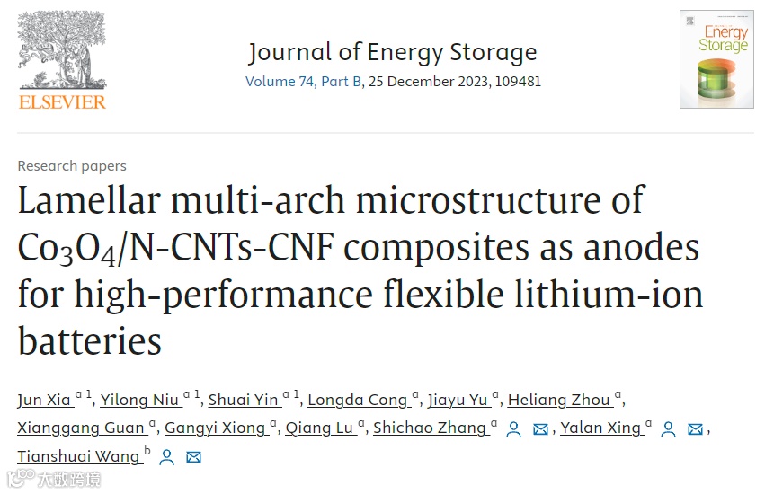 近日,北京航空航天大学张世超教授、邢雅兰副教授联合西北工业大学王天帅副教授在国际期刊《Journal of Energy Storage》上发表题为 “Lamellar Multi-Arch Microstructure of Co3O4/N-CNTs-CNF Composites as Anodes for High-Performance Flexible Lithium-ion Batteries” 的文章。