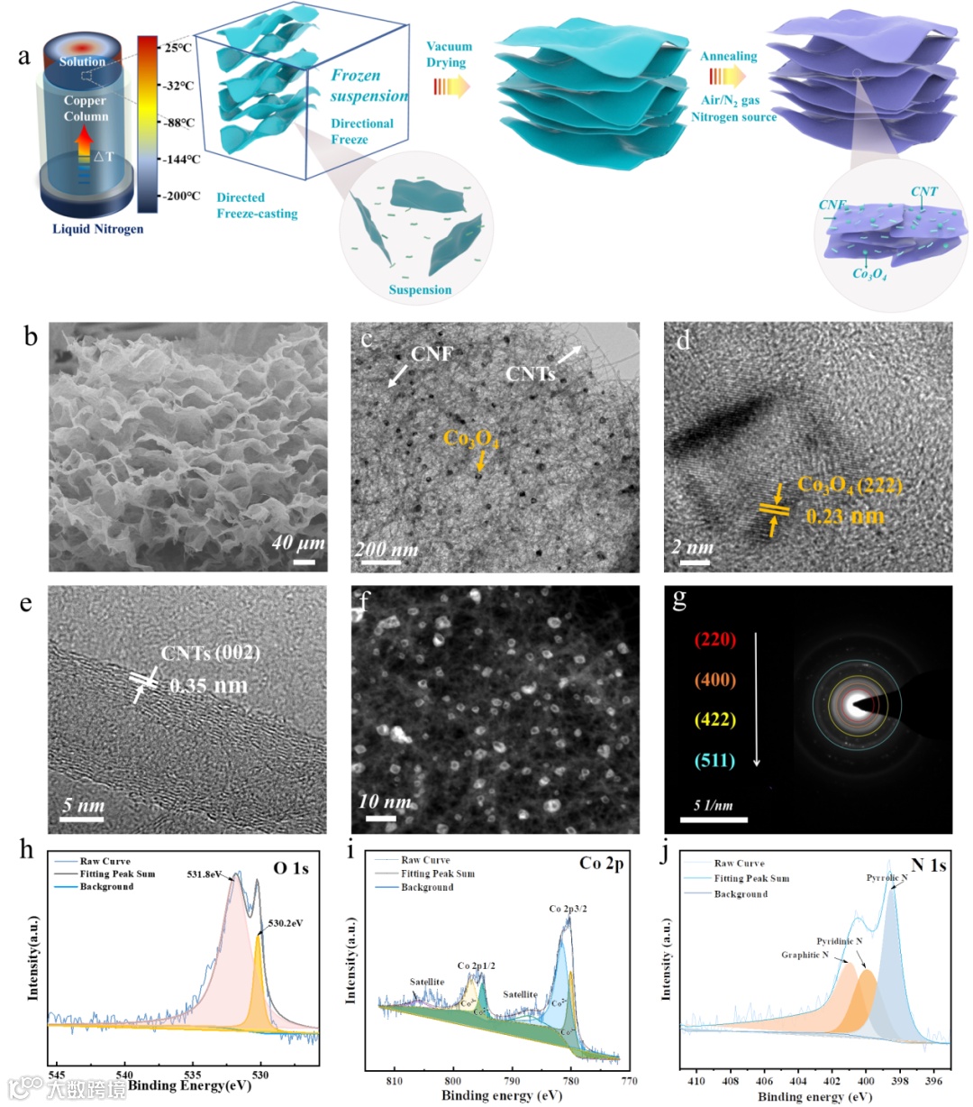 通过定向冷冻干燥技术合成纳米级Co3O4颗粒锚定在CNTs-CNF基体,形成了自支撑层状多拱形结构,能有效缓解循环过程中的体积膨胀难题。