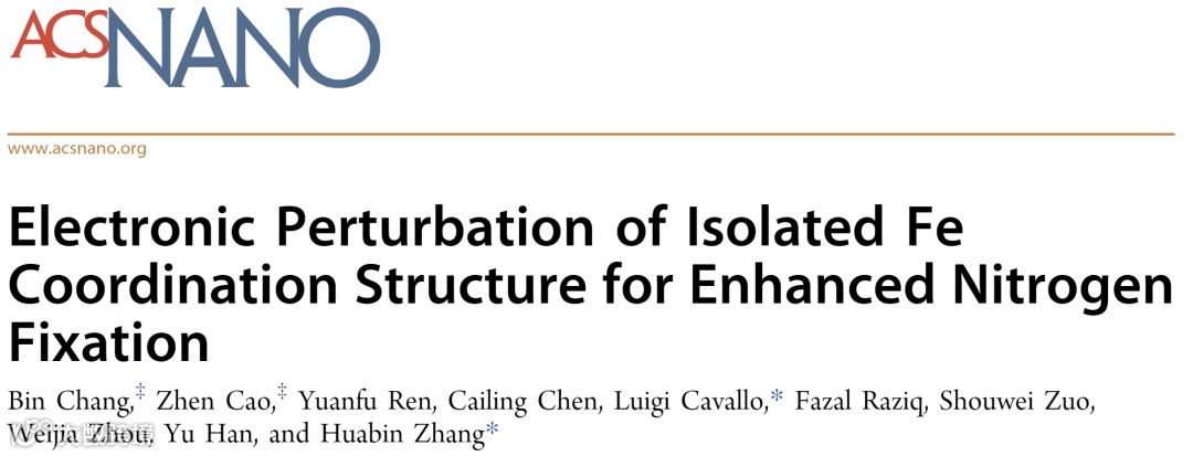 在电催化固氮反应过程中,局部电子结构调节对于提升单原子的催化效率至关重要。对此,张华彬教授和Luigi Cavallo教授团队通过调节铁活性中心的自旋态,实现了对铁单原子配位结构的电子扰动。自旋极化的跃迁有利于电子穿透氮的反键π轨道,有效激活氮分子,从而实现了115 μg h-1 mg-1cat的氨产率。原位光谱研究和理论计算表明,硼配位的引入可以调节NxHy中间体在Fe中心的吸附能。FeN2B2位点有利于NNH*中间产物的形成,降低了速率决定步骤的能量势垒,因此具有优异的固氮性能。
