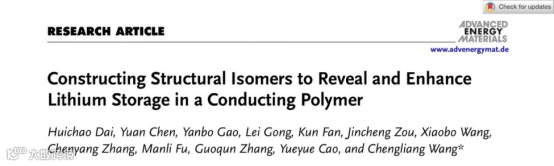 近日,来自华中科技大学的王成亮教授,在国际知名期刊Advanced Energy Materials上发表题为“Constructing Structural Isomers to Reveal and Enhance Lithium Storage in a Conducting Polymer”的文章。