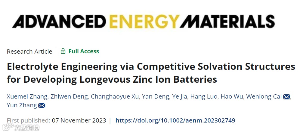 近日,四川大学张云/蔡文龙教授课题组在水系锌离子电池电解液研究方面取得最新进展,相关成果以“Electrolyte Engineering via Competitive Solvation Structures for Developing Longevous Zinc Ion Batteries”为题发表在国际著名期刊《Advanced Energy Materials》上。该工作通过竞争性溶剂化结构的构建,展示了一种独特的电解质调节策略,结合第一原理计算和表征分析,揭示了从根源上减少电池体系中活性水的含量,以及进一步在电极表面建立稳定的有机/阴离子富集的SEI膜,能有效诱导Zn均匀沉积并抑制副反应,从而实现锌离子电池的长循环稳定性。