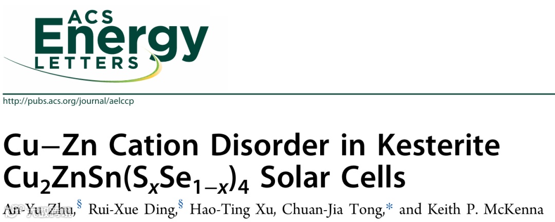 近日,来自中南大学的童传佳副教授带领的本科生团队,在国际著名期刊ACS Energy Letters上发表题为“Cu−Zn Cation Disorder in Kesterite Cu2ZnSn(SxSe1−x)4 Solar Cells”的观点文章。该观点文章分析了Cu-Zn阳离子无序同层无序和异层无序的两种情况下对材料性质的影响,不仅解决了该领域实验与理论长达二十多年的争论,更为如何制备更加高效的铜锌锡硫硒薄膜太阳能电池提供强有力的理论指导。