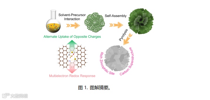 对可再生能源的日益需求促使人们大力追求高度稳定、环保和经济可行的储能技术。由于锌阳极的高理论容量(820 mAh g−1)和中等电化学电势(相对于标准氢电极为−0.76 V)、安全性和低成本,水性锌离子混合电容器(ZHCs)已成为储能领域的有力竞争者。理论上,锌阳极上的可逆Zn2+沉积/剥离过程提供了高能量输送,而电容器阴极上的快速离子吸附/解吸则提供了优异的功率输出。考虑到稳定的锌阳极在ZHCs的操作过程中保证了足够的电荷,追求的目标是开发具有先进纳米结构的碳阴极,以实现预期的锌离子存储能力。ZHCs的发展仍处于初级阶段,并存在一些关键问题,如高离子去溶剂化势垒导致的Zn2+动力学迟缓、大电流循环过程中的不稳定碳骨架等。解决这一困境的方法是设计高度亲锌和稳定的碳阴极,以克服ZHCs的上述障碍。