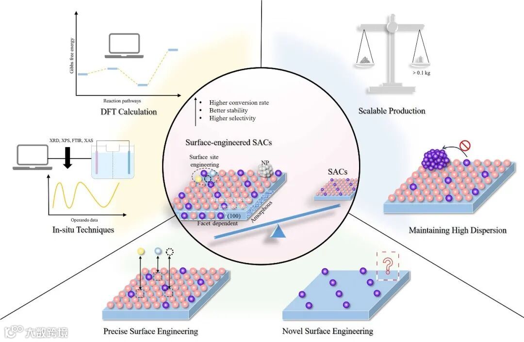图12. 用于能源转化的表面工程SACs的主要挑战和未来方向。
