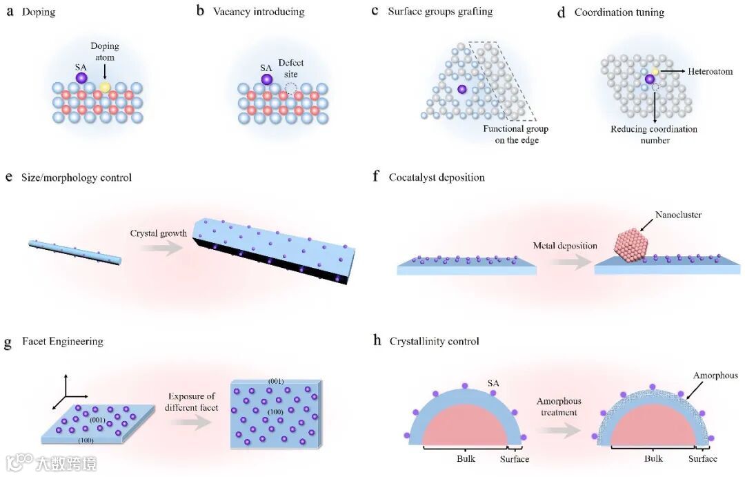 图4. 单原子催化剂的表面工程分类示意图。