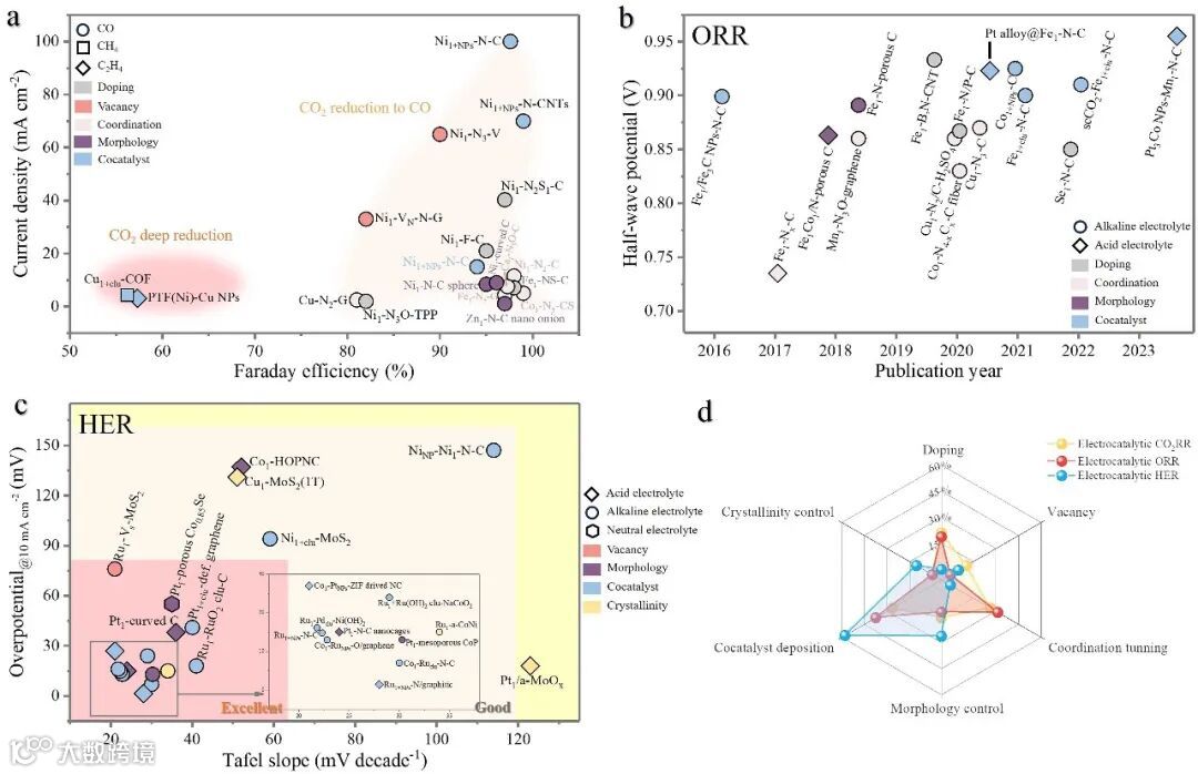 要点一:对各种单原子催化剂的表面工程策略进行总结,包括表面位点工程(原子掺杂、空位设计、表面官能团修饰、配位结构设计)和表面结构工程(调控尺寸形貌、助催化剂负载、晶面调控、结晶度调控)。