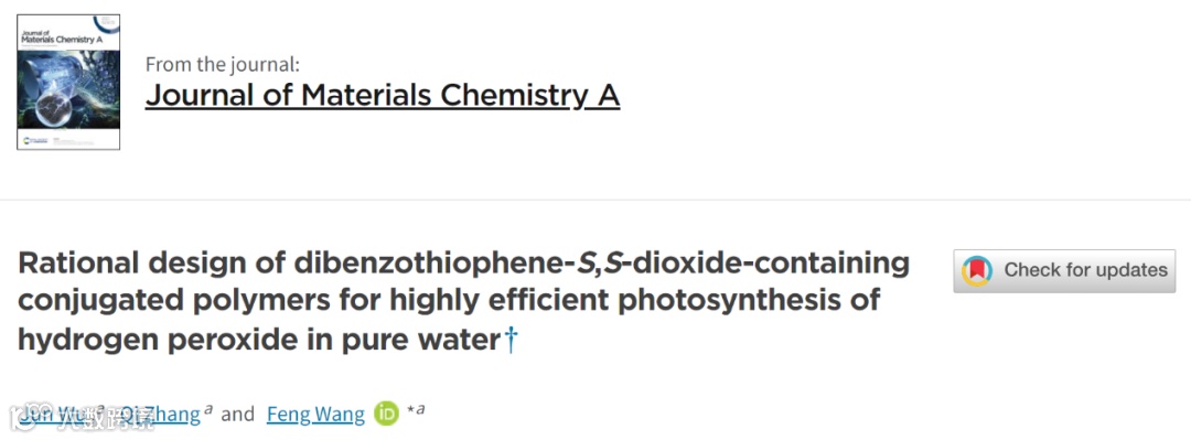 武汉工程大学汪锋教授课题组在Journal of Materials Chemistry A上发表了题为“Rational design of dibenzothiophene-S,S-dioxide-containing conjugated polymers for highly efficient photosynthesis of hydrogen peroxide in pure water”的研究论文。该工作报道了一种以二苯并噻吩砜为缺电子单元,以吡嗪为构建单元的共轭聚合物,优化了光催化生成H2O2的路径,提升了光催化活性。