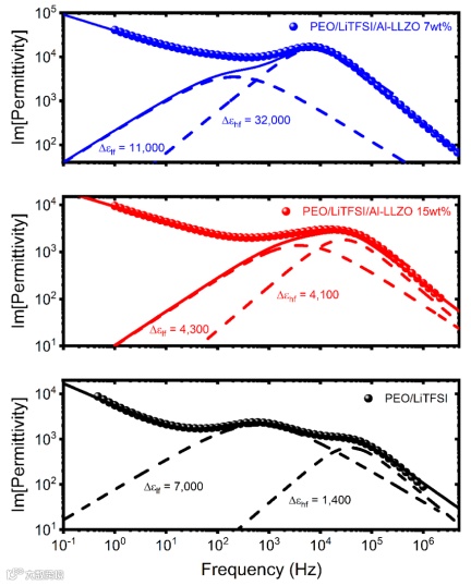 作者使用介电弛豫光谱研究了强束缚和高流动性 Li+ 的动力学。Al-LLZO 片晶的掺入增加了更易移动的 Li+ 的数量密度。
