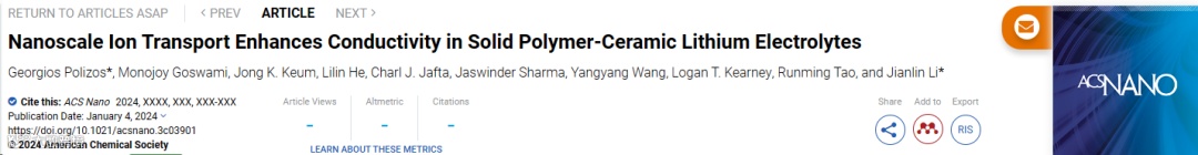 Georgios Polizos et al., Nanoscale Ion Transport Enhances Conductivity in Solid Polymer-Ceramic Lithium Electrolytes. ACS Nano 2024.