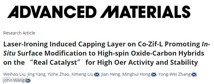 近日,来自新加坡国立大学的John Wang教授,新加坡科学与技术研究局高性能计算研究中心的张永伟教授,厦门大学洪明辉教授,新加坡国立大学的刘西蒙博士,刘伟豪,等,在国际知名期刊Advanced Materials上发表题为“Laser-Ironing Induced Capping Layer on Co-ZIF-L Promoting In-Situ Surface Modification to High-spin Oxide-Carbon Hybrids on the “Real Catalyst” for High OER Activity and Stability”的观点文章。该文章提出了一种全新的“激光熨烫(LI,Laser-Ironing)”技术,可原位诱导生成“激光熨烫覆盖层(LICL,Laser-Ironing Capping Layer)”,实现了电催化过程中对前体形貌的保持并生成了高自旋氧化物,显著的提升了OER活性与稳定性,同时在机理上进一步探究了内在原因。