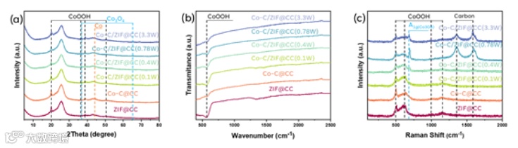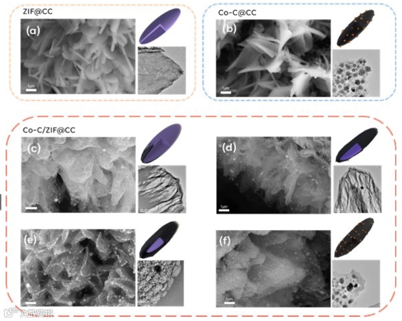 在这项工作中,研究者选用低功率激光作为能源,有目的地实现激光熨烫(LI),在Co-ZIF-L的表面进行原位转换,获得由碳和 Co 纳米颗粒组成的激光熨烫覆盖层 (LICL)包裹ZIF(Co-C/ZIF@CC)。通过调节LI功率,可以实现对LICL结构的调控。