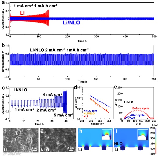 图2. NLO阳极氧化膜在液态锂金属电池中的表现。