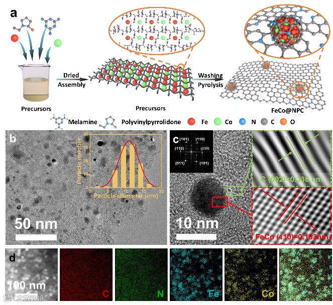在对FeCo@NPC进行了详细的表征测试后,证明了FeCo@NPC核壳结构的存在以及催化活性来源机制。