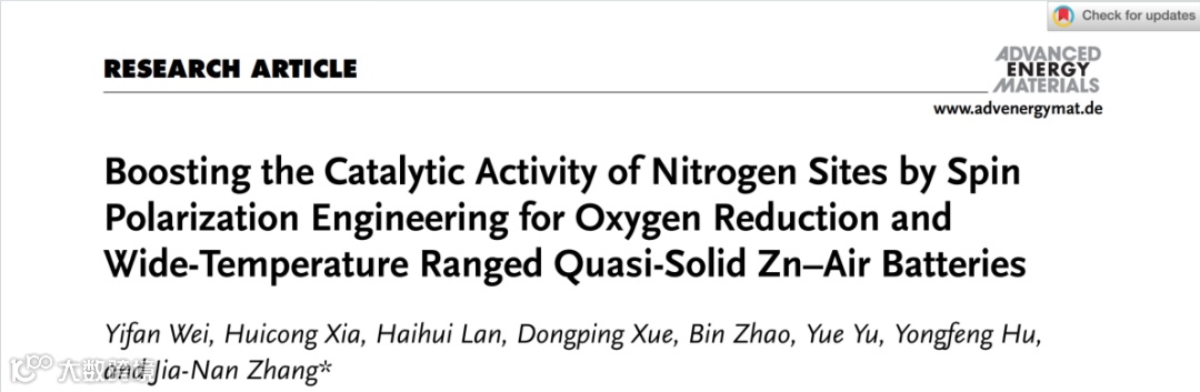 自旋极化工程提高N位点氧还原催化活性及应用于宽温条件准固态锌空电池