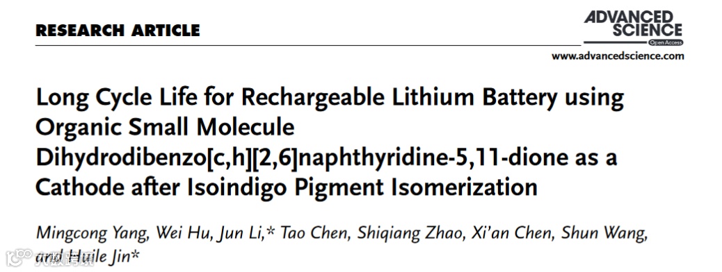 近日,来自温州大学的金辉乐研究员、李俊教授课题组博士后杨明聪与研究生胡伟作为共同一作在国际知名期刊advanced science上发表题为“Long Cycle Life for Rechargeable Lithium Battery using Organic Small Molecule Dihydrodibenzo[c,h][2,6]naphthyridine-5,11-dione as a Cathode after Isoindigo Pigment Isomerization”的文章。该文章首次提出了EFID及其异构体FBND可作为绿色可持续锂电的正极电极材料,系统研究了大容量、高稳定的电化学储能机制。研究结果为今后开发高结构稳定性的小分子有机正极材料提供了新的分子设计思路。