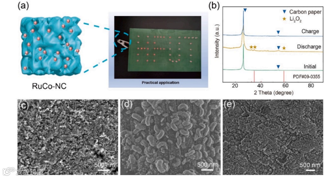 图1. RuCo-NC作为正极催化剂组装的Li-O2电池及其实际应用