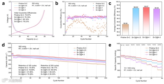 图1. Si-C与Si-C@A在室温下的电化学性能分析