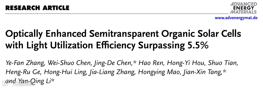 基于此,苏州大学唐建新教授团队在国际知名期刊Advanced Energy Materials上发表文章“Optically Enhanced Semitransparent Organic Solar Cells with Light Utilization Efficiency Surpassing 5.5%”.
