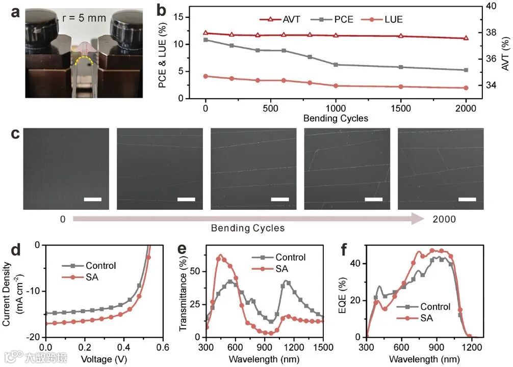 图5. 柔性ST-OSCs与窄带隙ST-OSCs器件性能。