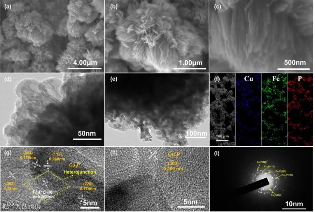 图3 3D菊花结构CuFe-P/IF的结构表征。