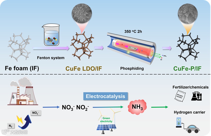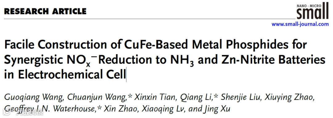 简易构建铜铁基金属磷化物材料用于NOx-还原合成NH3和在电化学池中的Zn-亚硝酸盐电池