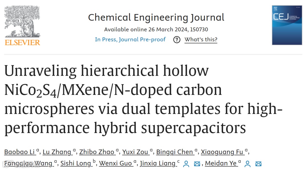 “Unraveling hierarchical hollow NiCo2S4/MXene/N-doped carbon microspheres via dual templates for high-performance hybrid supercapacitors”