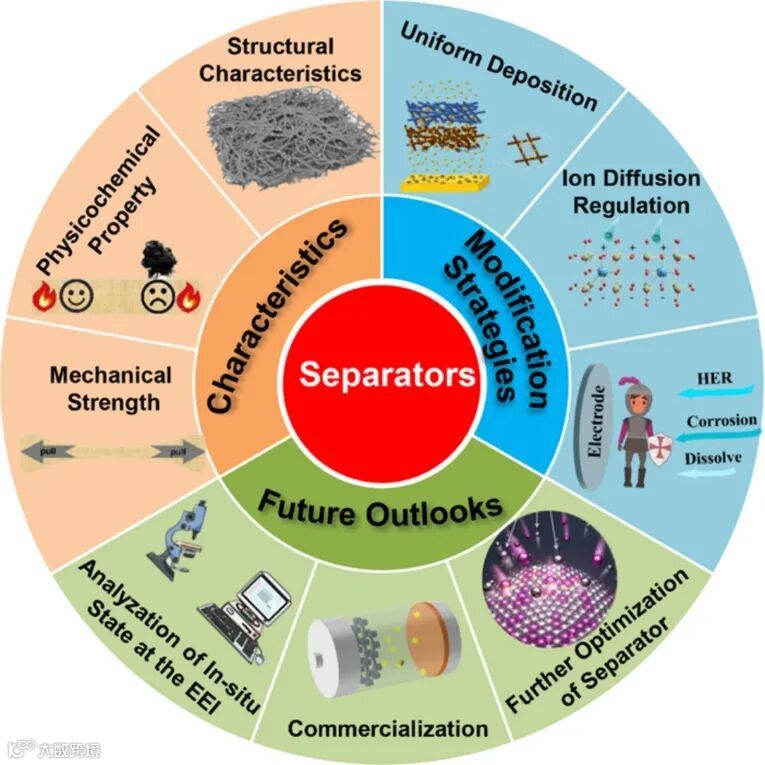 图1. 水系锌离子电池中的隔膜——特性、优化策略、展望。