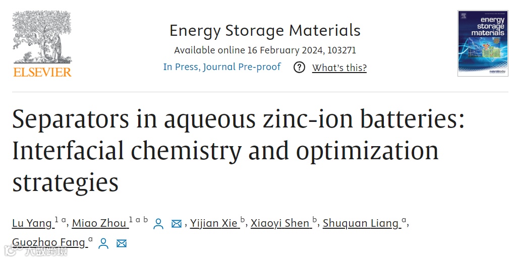 Separators in aqueous zinc-ion batteries: Interfacial chemistry and optimization strategies,Energy Storage Mater. (2024).