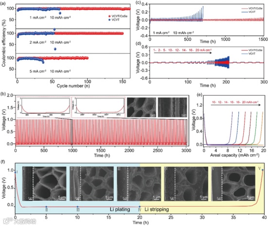 要点二:VCVT/CoSe的电化学性能与锂沉积形貌