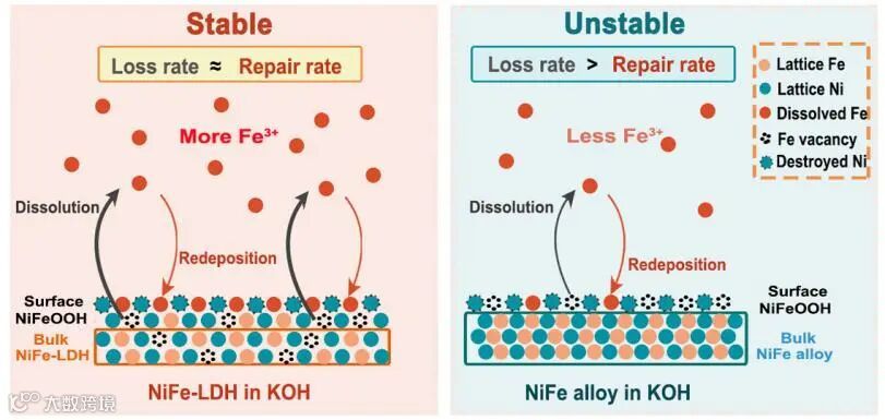 揭示NiFe基电催化剂在析氧反应中通过铁的动态交换实现自修复的机制