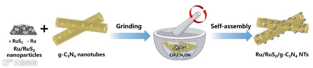 图1.Ru/RuS2/g-C3N4NTs合成示意图。