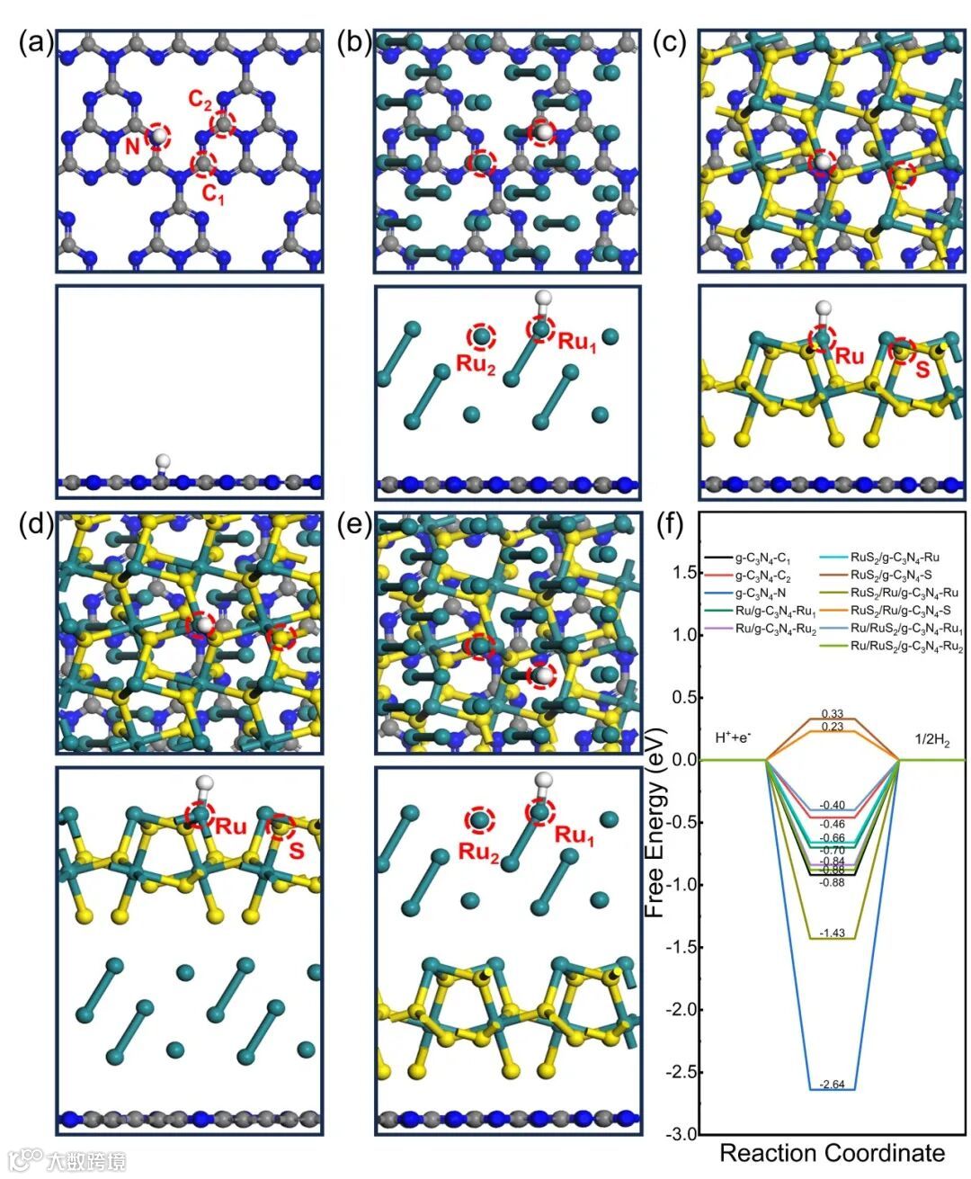图7. g-C3N4NTs和Ru/RuS2/g-C3N4NTs的理论计算