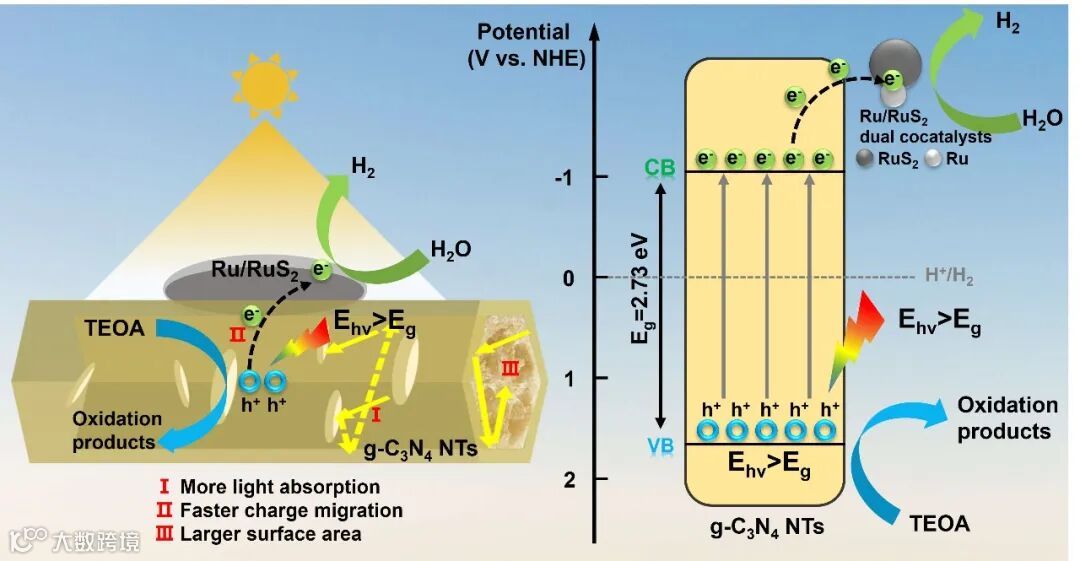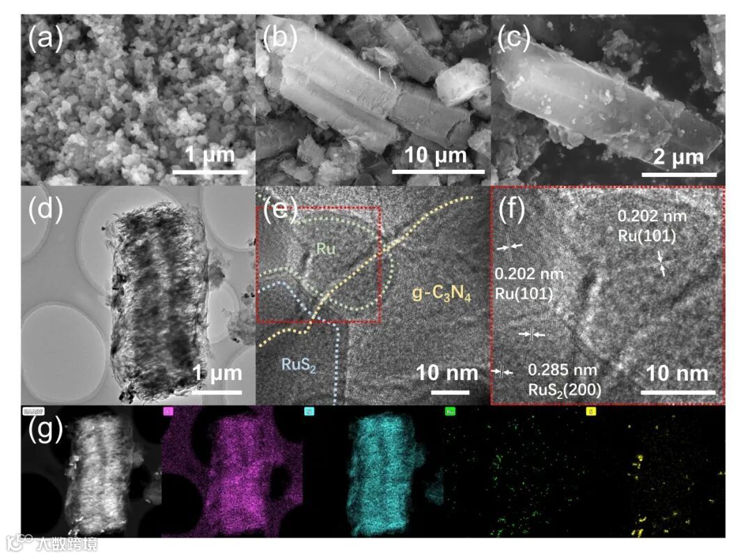 要点一:Ru/RuS2纳米粒子作为双助催化剂在g-C3N4纳米管表面自组装。