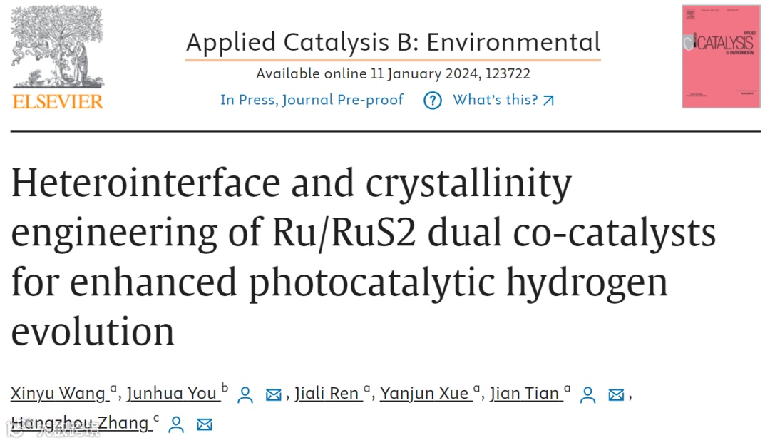 Ru/RuS2双助催化剂的异质界面和结晶工程用于增强光催化析氢