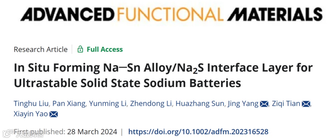 原位形成Na─Sn合金/Na2S界面层助力实现稳定的固态钠电池