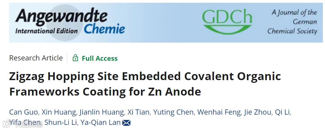 锯齿状锌传输位点的COFs的设计合成助力高性能水系锌金属负极