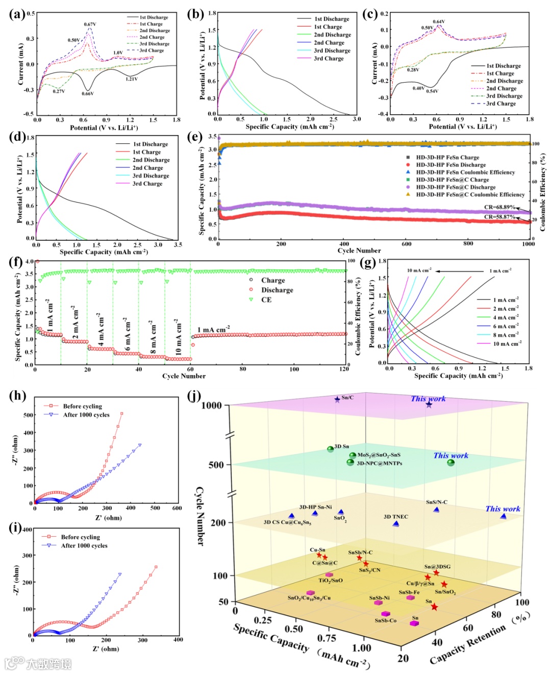 图4. HD-3D-HPFeSn@C负极的电化学性能