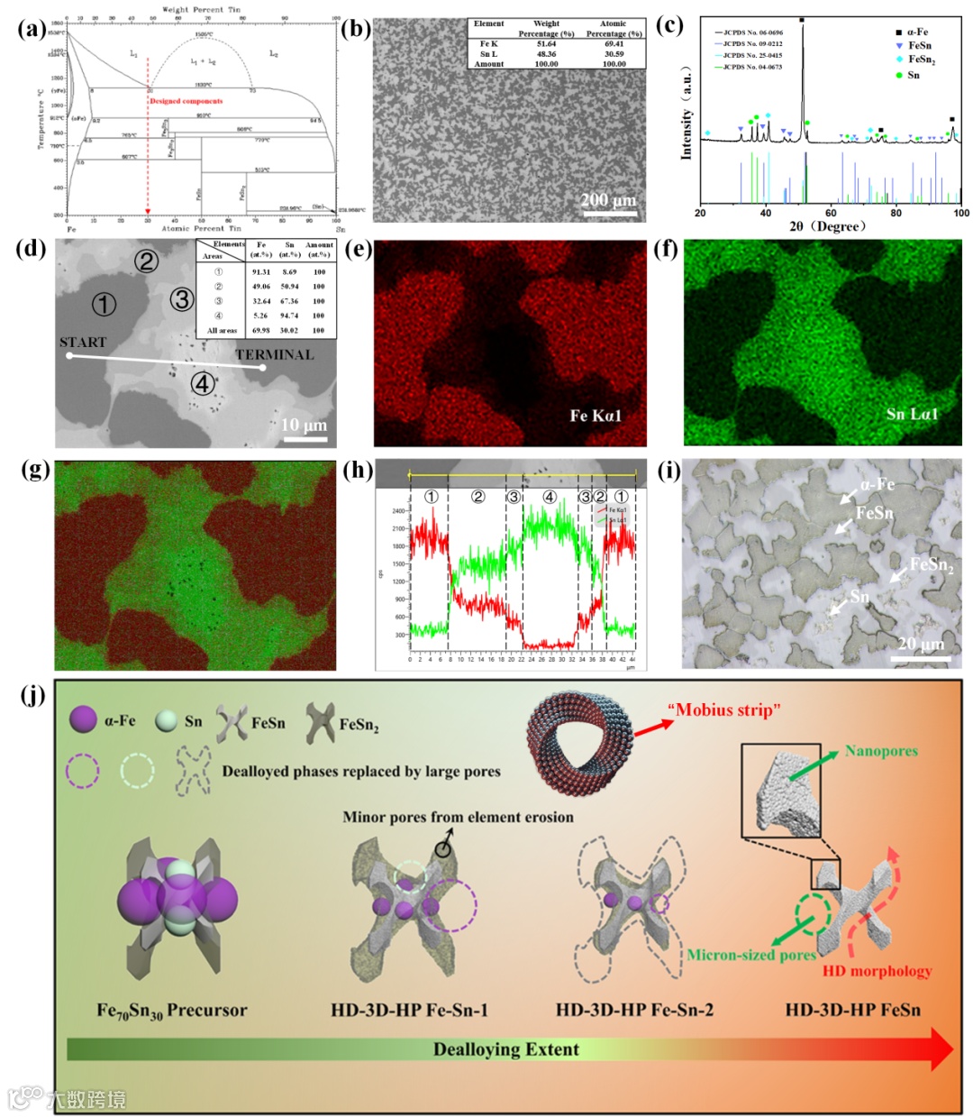 图1. Fe70Sn30前驱体的结构形貌与HD-3D-HPFeSn@C负极的原位设计示意图