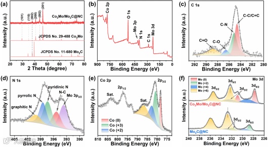 图3 Co3Mo/Mo2C@NC的PXRD和XPS图谱。