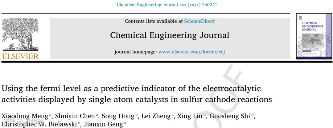 使用费米能级来预测单原子催化剂在硫正极反应中的电催化活性