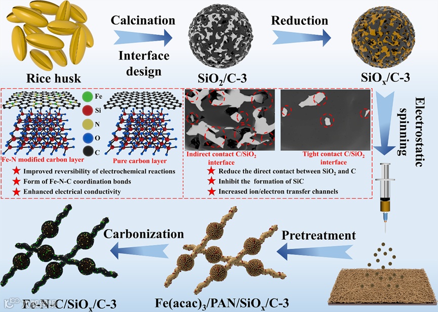 Fe-N-C修饰的梯度导电结构SiOx/C纤维网络用于高性能锂离子电池