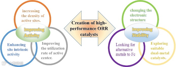 催化活性的提高主要通过以下技术实现:(1)增加活性位点的密度:许多工作已经证明,活性中心的数量与催化活性正相关;(2)设计高本征活性的催化活性位点:为了实现这一目标,有必要定义主要活性位点,并确定影响性能的主要因素;(3)提高活性中心的利用率:今后应努力在不引起金属聚集的情况下,尽可能增加单原子活性位点的数量;(4)增加活性位点的暴露:被碳层覆盖的金属位点的催化活性低于暴露于碳层的位点,催化剂的多级孔结构有利于暴露更多的活性位,提高反应物和产物的传质速率。